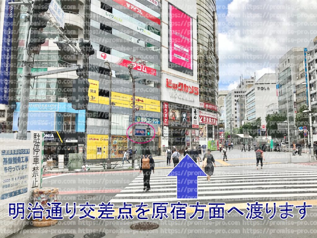 明治通りの交差点を原宿方面へ渡ります。